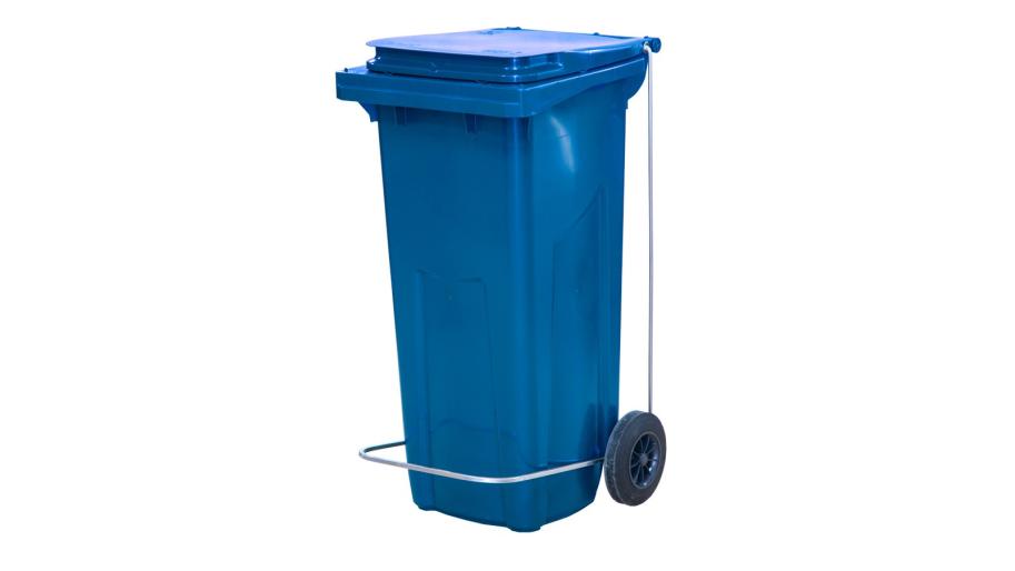 Бак для мусора 120 л. 55*45*96 см. синий, с крышкой на колёсах с педалью /1/