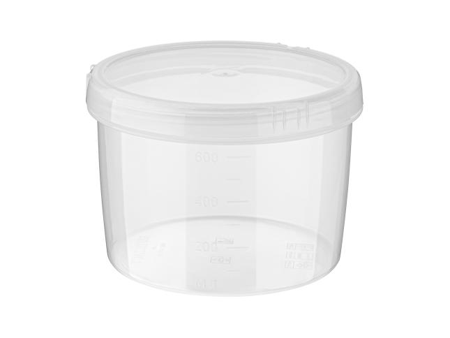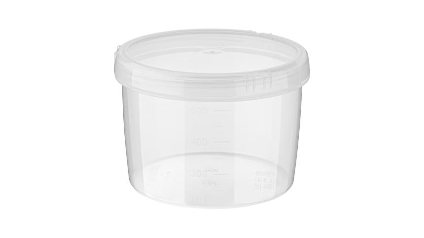Прозрачный корпус и крышка позволяют видеть содержимое, а мерная шкала на корпусе поможет определить объем продукта.