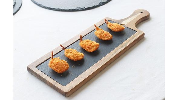 Блюдо для подачи прямоуг. 45*15 см. h=1,5 см. черное, сланец, на дерев. подставке с ручкой MGprof (WB-003) /1/16/