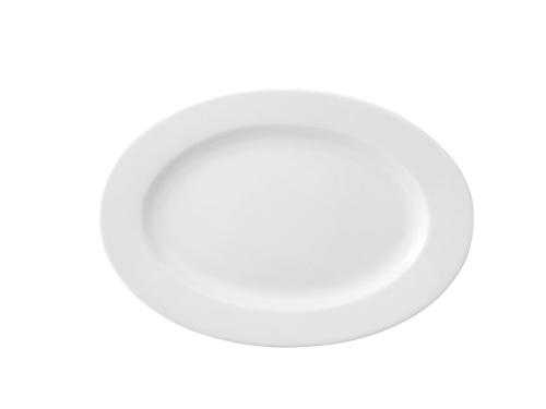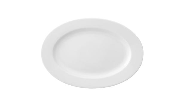Блюдо белого цвета со сливочным оттенком.