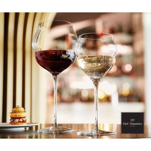 Смелые округлые формы служат одной цели — еще больше раскрыть свойства и качества вина: двойная чаша создает двойную игру открытия и закрытия бокала.