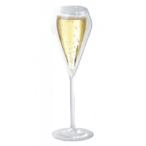 Элегантные прозрачные бокалы для шампанского с двойными стенками , которые сохраняют жидкость холодной в течение длительного периода времени, а внешнее стекло остается безопасным на ощупь.