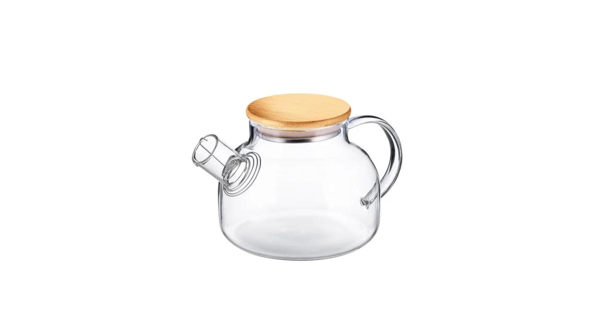 Чайник  850 мл. заварочный крышка бамбук, Термостекло /1/12/