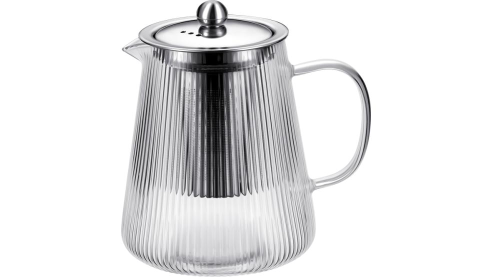 Чайник 900 мл. заварочный с крышкой нерж. с фильтром, Термостекло /1/27/