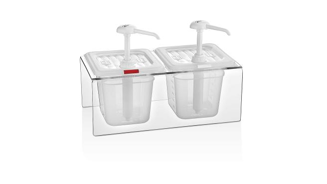 Диспенсер (емкость) для соуса 2 GN 1/6 h=150 мм. 2 л. на подставке, с дозатором (25 мл), п/п, прозрачный GP /1/