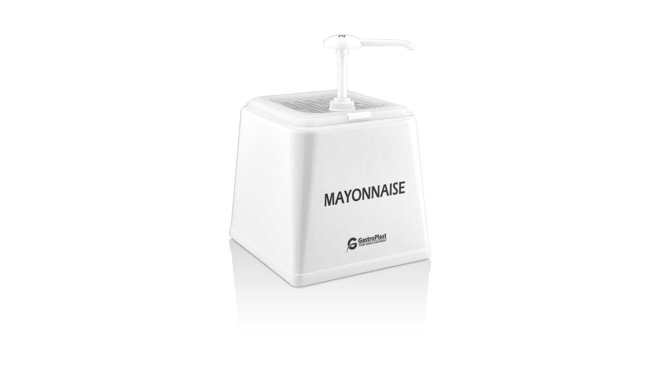 Диспенсер (емкость) для соуса 225*210 мм. h=225 мм. 2,5 л. с дозатором (25 мл), п/п, белая подставка пластик GP /1/