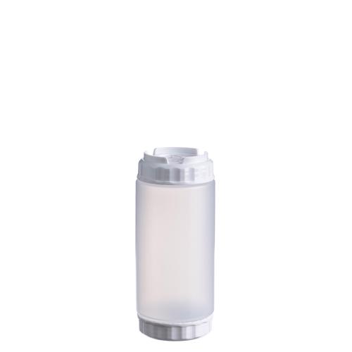 Емкость для соуса 500 мл выполнена из прочного пищевого пластика и предназначена для профессионального использования в сегменте HoReCa. Конструкция имеет две откручивающиеся крышки и съемный силиконовый клапан, что обеспечивает удобство наполнения, использования и ухода, а также позволяет дозировать содержимое без подтеков и экономит место для хранения. Белый цвет служит маркировкой для майонеза и других белых соусов. Прозрачный корпус облегчает визуальный контроль содержимого. Подходит для мытья в посудомоечной машине.