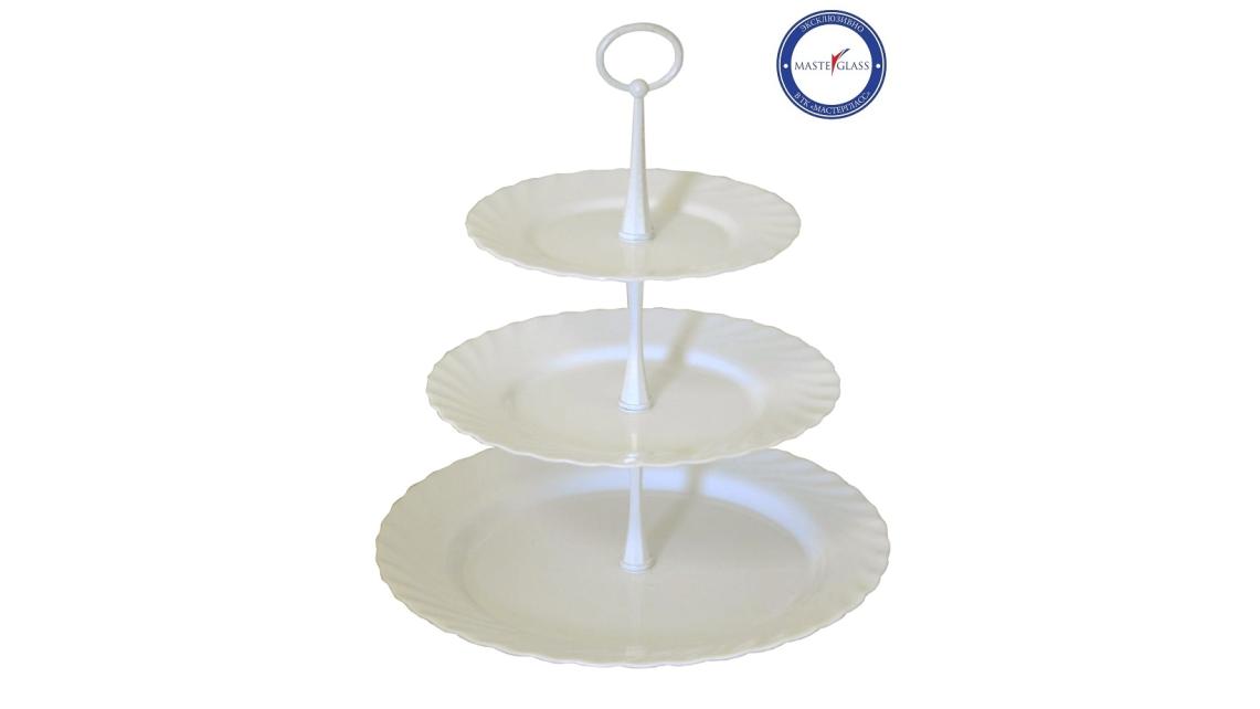 string(1256) "Этажерка обязана своим появлением французским мастерам, установившим тарелки разного диаметра на одну вертикальную ось.