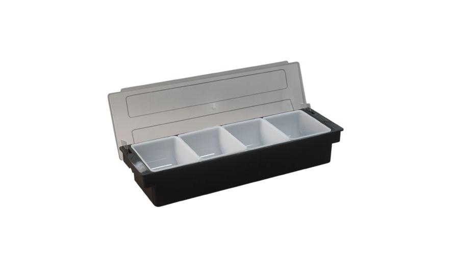Контейнер для фруктов, специй и соусов 4 отд. по 0,7 л. черный, пластик. MGprof /1/12/