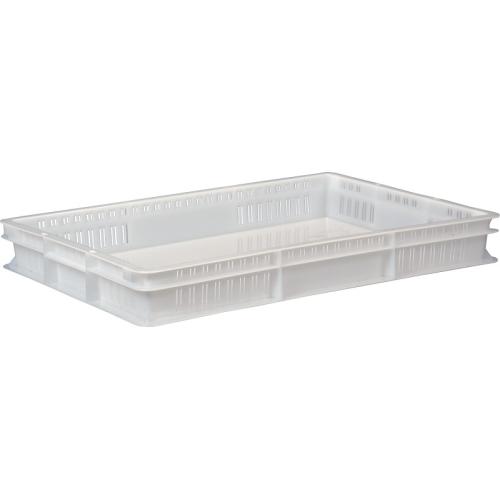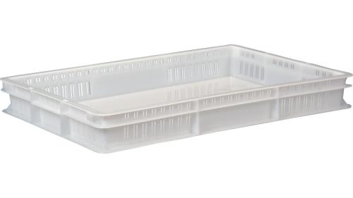 Контейнер для теста 600*400* 75 мм. (-30/+60°C) прямой, сплошное дно и перфорированные стенки, морозостойкий, белый полиэтилен (крышка 49164) /1/128/