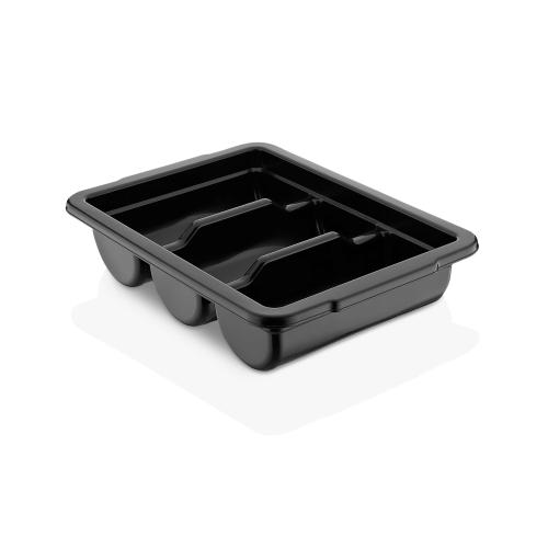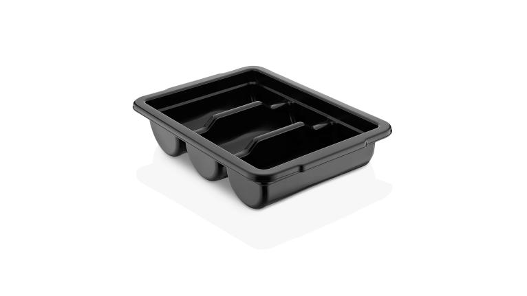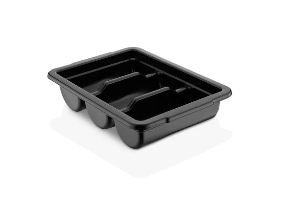 Емкость для столовых приборов (40*29*9,5 см) из полипропилена на 3 секции. Удобные ручки обеспечивают надежный хват. Возможность штабелирования экономит место при хранении. Подходит для мытья в посудомоечной машине.