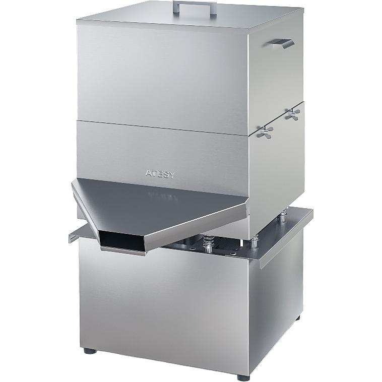 Мукопросеиватель ATESY Каскад используется на предприятиях общественного питания и торговли, в пекарнях и кондитерских для просеивания, разрыхления и обогащения кислородом (аэрации) муки. Модель оснащена системой магнитной сепарации, которая позволяет улавливать частицы стали при разрушении сетки. Бункер выполнен из нержавеющей стали, корпус привода - из оцинкованной стали, сито - из специальной магнитной стали.