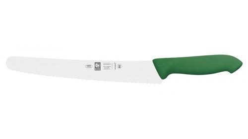 Нож кондитерский 250/380 мм. с волн. кромкой, зеленый антибактер. ручка HoReCa Icel /1/6/