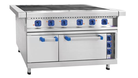 Предназначена для приготовления первых, вторых, третьих блюд в наплитной посуде, а также для жарки полуфабрикотов из мяса, рыбы, овощей и выпечки мелко штучных кулинарных изделий.Чугунные конфорки в качестве нагревательных элементов оснащены двумя ТЭНами, что обеспечивает быстрый и равномерный нагрев, а также гарантирует долгий срок эксплуатации конфорок. Площадь конфорок - 0,72 кв.м. Конфорки образуют ровную поверхность, что обеспечивает удобное и легкое перемещение наплитной посуды. Внизу - жарочный шкаф с тремя противнями размером 530х470х30 мм, изготовленными из черного металла. Духовка имеет раздельную регулировку мощности верхнего и нижнего блоков ТЭНов. Рабочий диапазон температуры духовки 65-270 С, установленный аварийный терморегулятор предохраняет шкаф от перегрева 320 С. Плита имеет регулируемые по высоте ножки.
