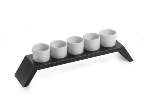 Подставка 31*7*10 см. с 5-ю фарфор. соусниками, дерево венге Pinti (51273900) /1/ Под заказ