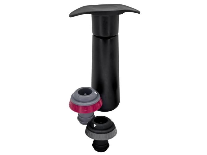 Благодаря вакуумному насосу в бутылке создается герметичный вакуум, который сохраняет вино после открытия, что способствует более длительному хранению вина.