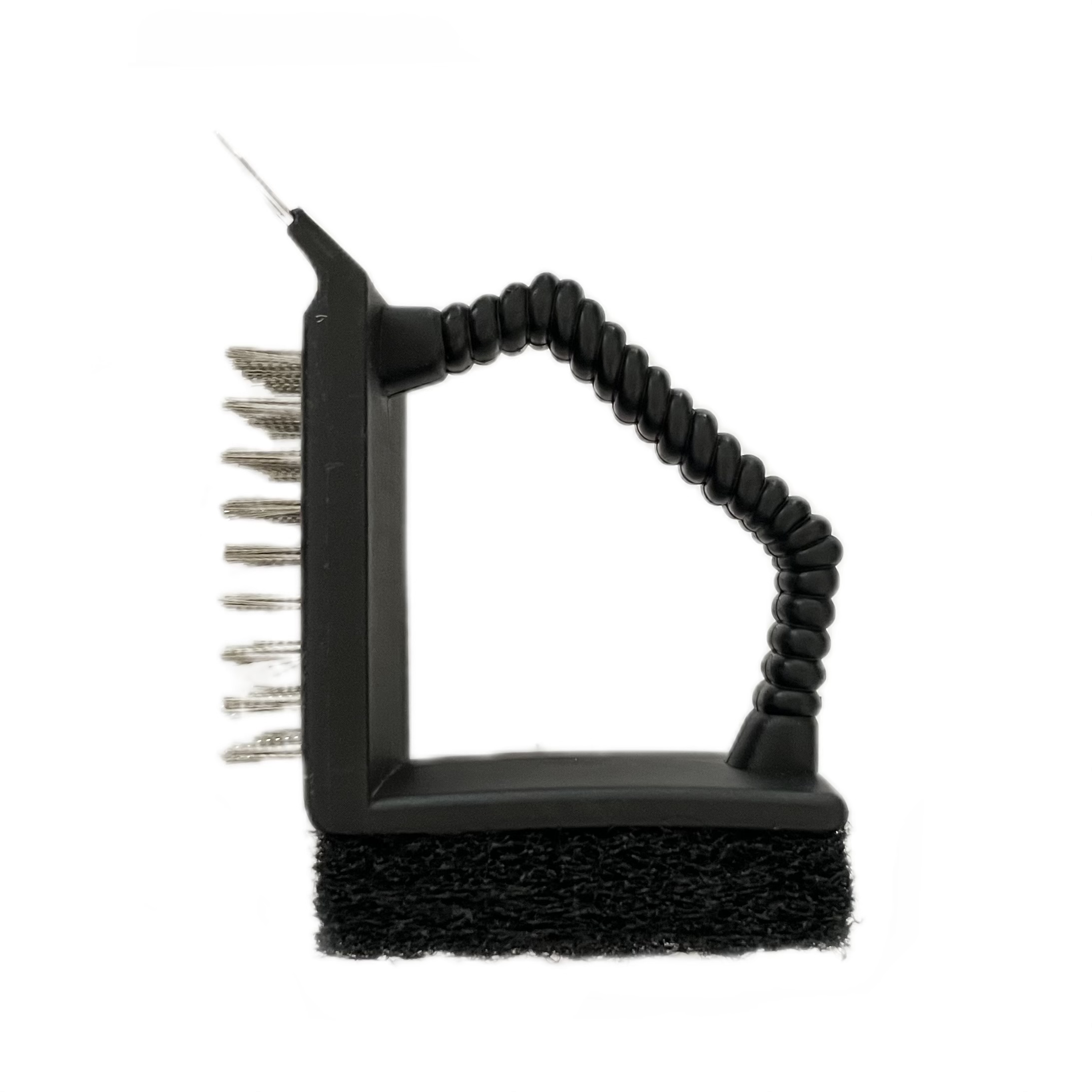 Щетка для гриля 9*6 см. со стальной щетиной h=1.5 см., со скребком и губкой /1/10/
