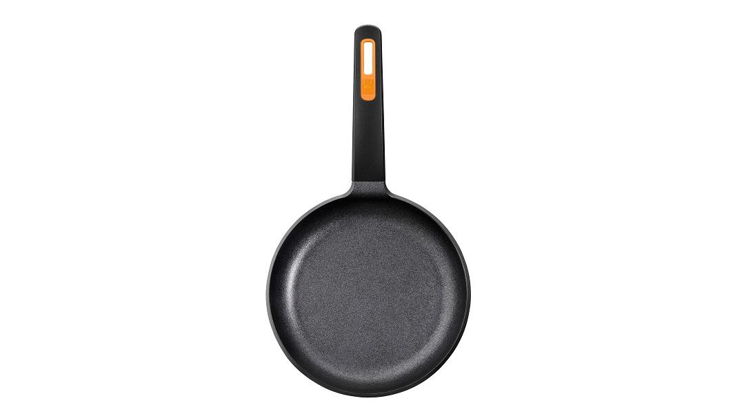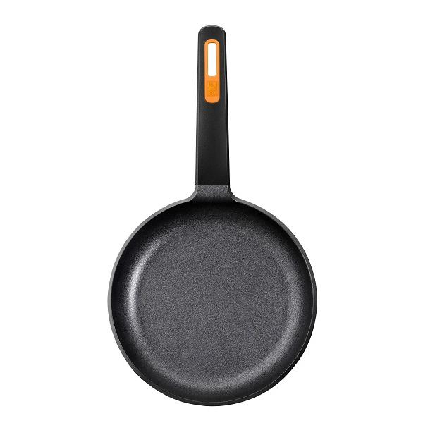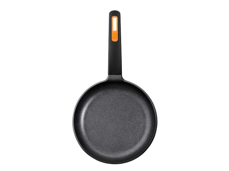 Ручка произведена из термостойкого материала, имеет эргономичную форму, что позволяет легко штабелировать сковородки при хранении