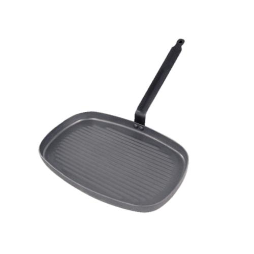 Тяжелая стальная прямоугольная сковорода для гриля идеально подходит для жарки мяса и рыбы, ракообразных.