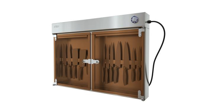 Дверь оснащена замком. Держатель для ножей выполнен в виде магнитной планки и имеет длину 752 мм.