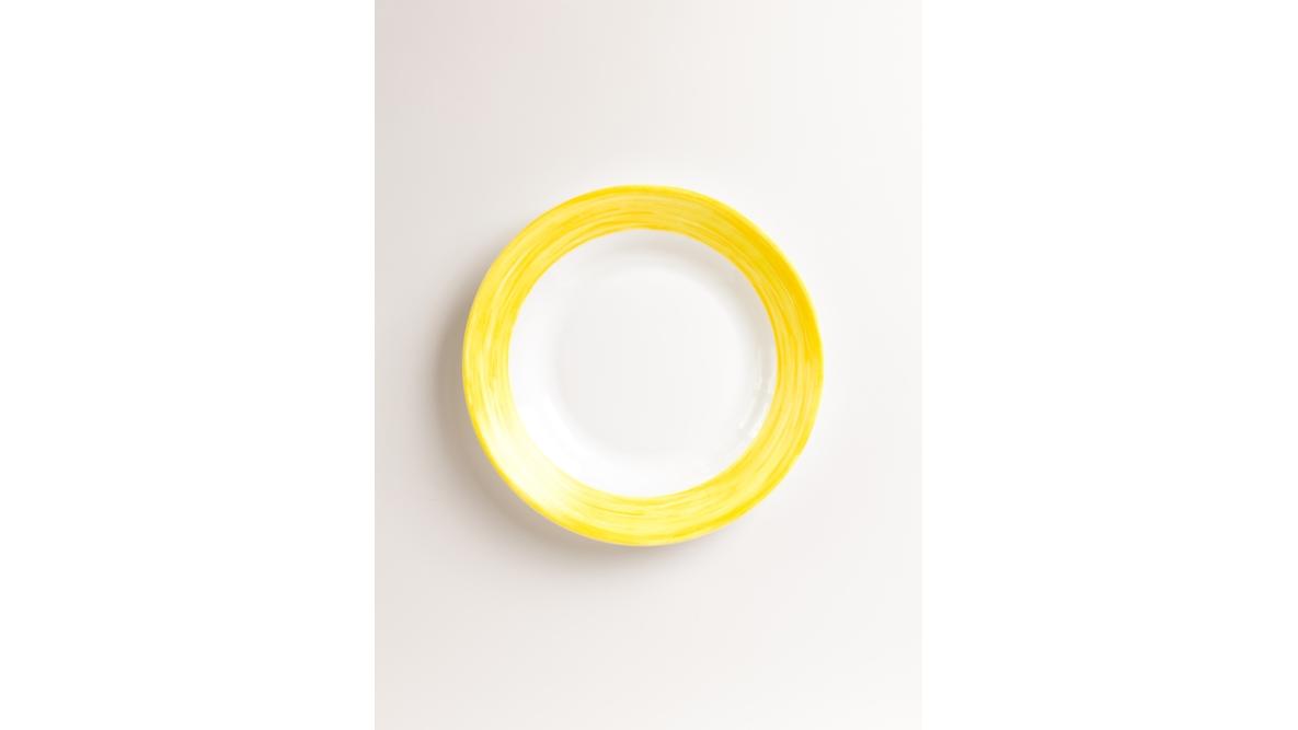 Тарелка d=225 мм. глубокая желтый край Браш /1/24/ АКЦИЯ