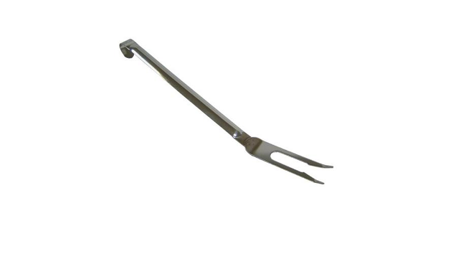 Вилка поварская (транжирная) предназначена для вытаскивания больших кусков мяса из котла, удерживания при жарке, тушении, а также при нарезке и подаче любых блюд из мяса.