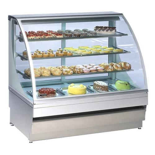 Корпус прибора изготовлен из нержавеющей стали. Подсветка располагаются под каждой полкой, верхняя полка имеет отдельное освещение, таким образом предлагаемые посетителям товары демонстрируются максимально эффективно. А за счет гнутого стекла открывается максимальный обзор. Наклон стеклянных полок можно регулировать от 0 до 7°. Стеклянная задняя дверца позволяет менять расположение блюд за прилавком, не выходя в зал.