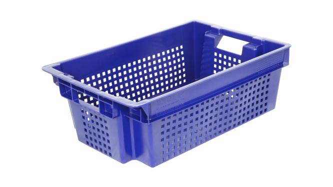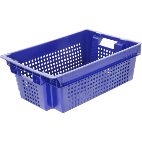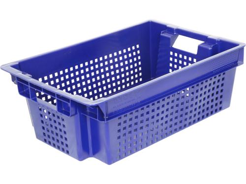 Ящик 600*400*200 мм. для овощей конусный перфорир. дно сплошное, синий (крышка 65079) /1/140/ АКЦИЯ