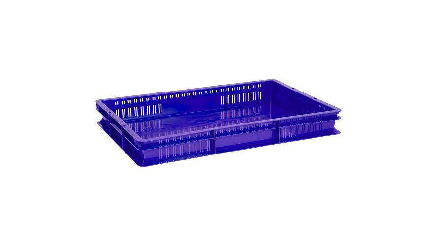 Ящик 600*400*75 мм. для хранения продуктов, прямой перфорир. сплошное дно, синий (крышка 65079) /1/128/