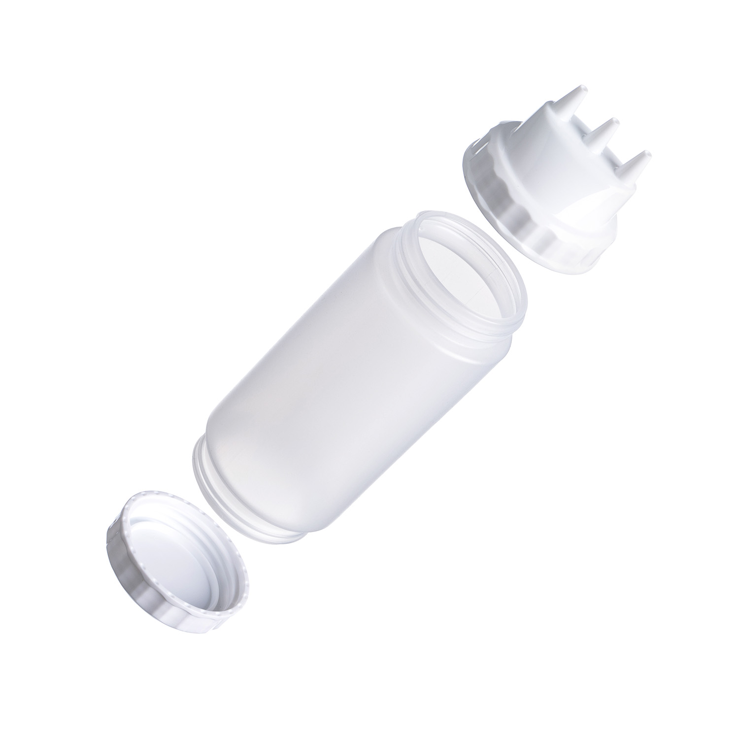 Емкость для соуса 500 мл. d=70 мм. h=200 мм. с 2 крышками 3 носика прозрачная, крышки белые GP /1/96/