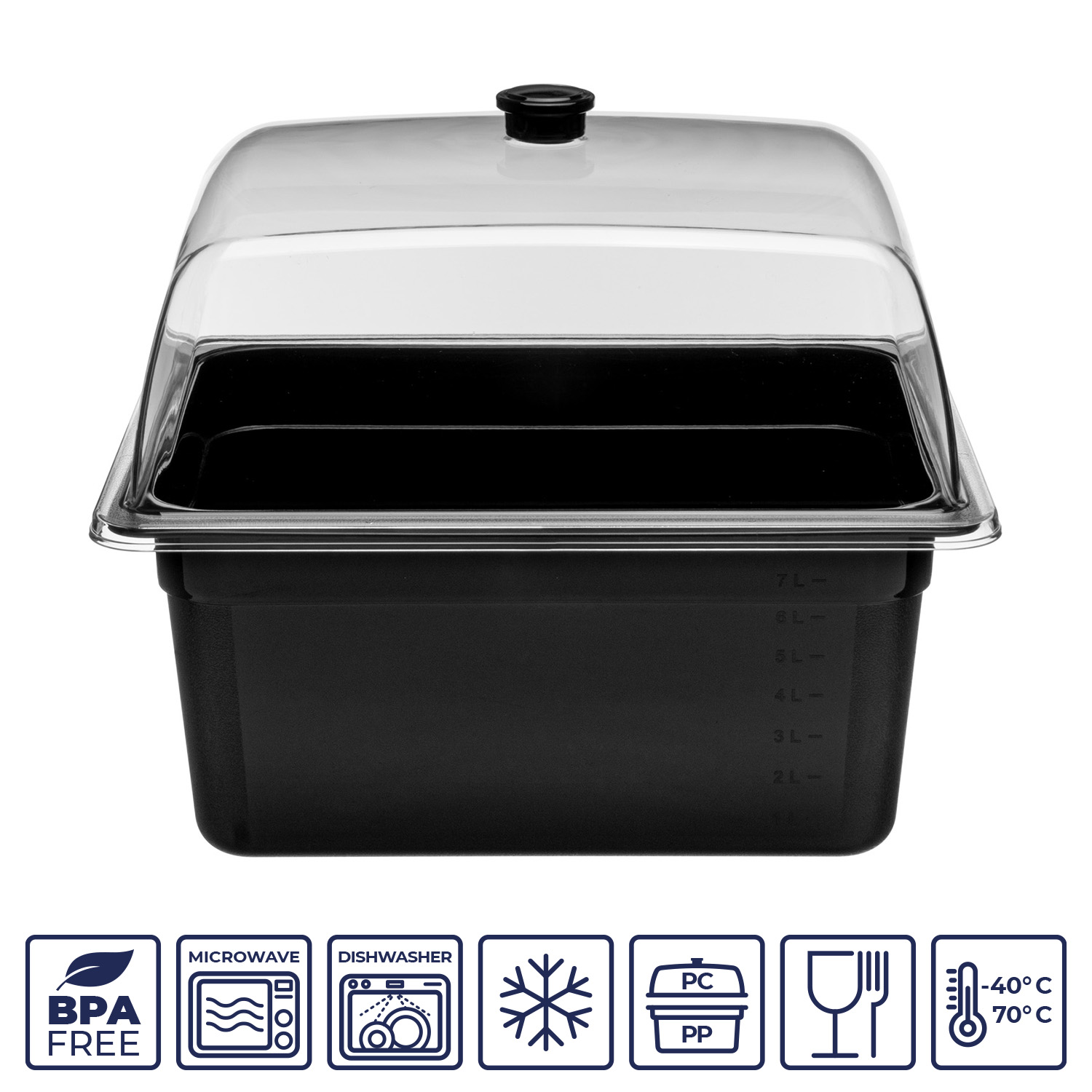Гастроемкость 1/2 h=150 мм. 8 л. п/п черная GP /1/12/