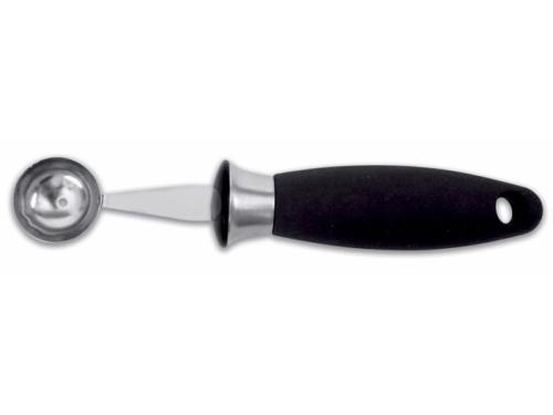 Фактически - это ложка сферической формы с заостренными краями из нержавеющей стали и практичной пластиковой ручкой.