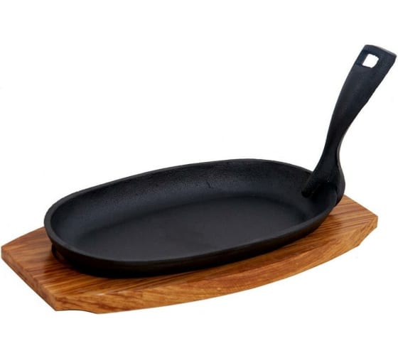 Сковорода 22,5*12,5 см. h=4 см. 0,42 л. чугун. съемная ручка на дерев. подставке /1/12/