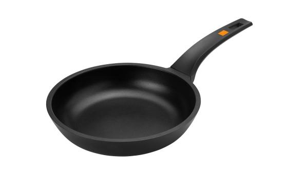Ручка произведена из термостойкого материала, имеет эргономичную форму, что позволяет легко штабелировать сковородки при хранении