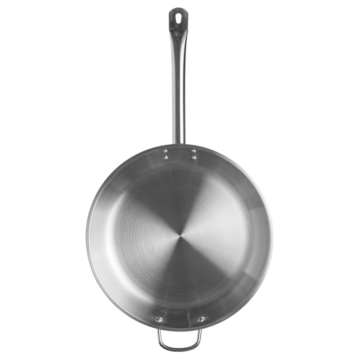 Прочная литая ручка имеет надежное клепочное крепление к сковороде, а также отверстие для подвешивания.  Разрешается мыть в посудомоечной машине.