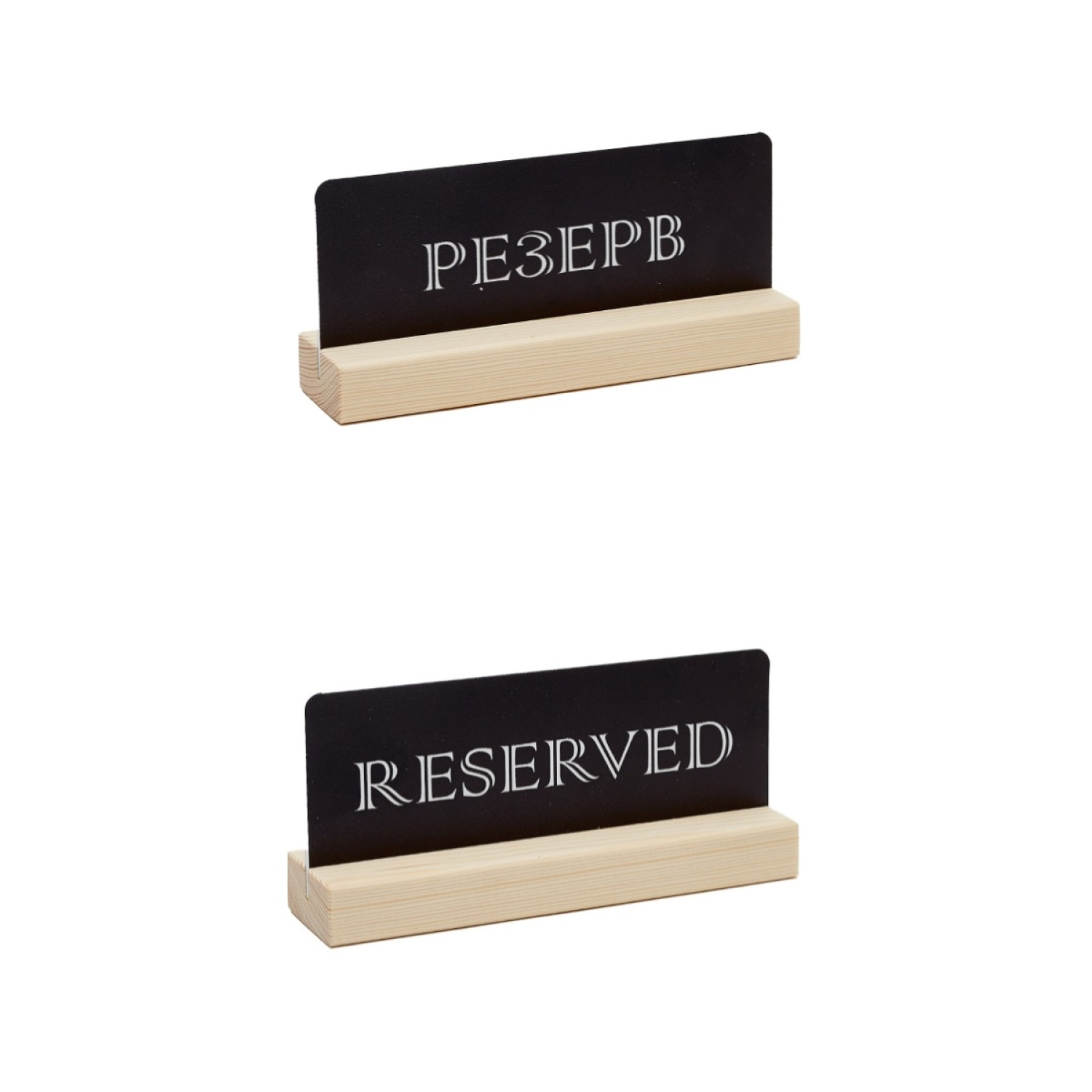 Табличка Резерв стола черная двусторонняя размером 150х70х40 мм. Верхние углы у таблички скруглены. Устойчивое основание из натурального бессучкового дерева высшей степени обработки. Табличка для заведений общепита, кафе и ресторанах.